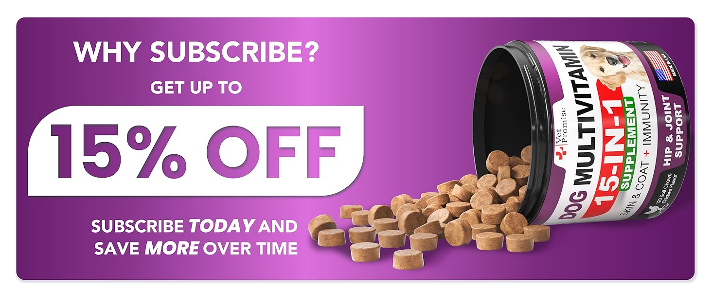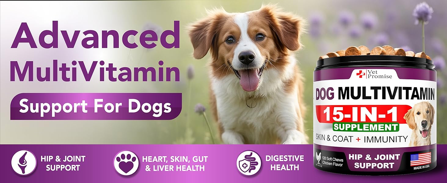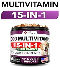 - 15-in-1 Dog Multivitamin: offers a unique and effective blend of dog supplements & vitamins, including 6 probiotics, Omega-3 rich salmon oil, glucosamine, promoting your pet's overall wellbeing