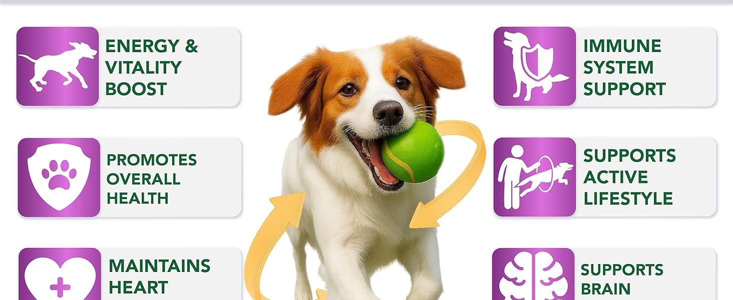 - Hip & Joint Support: our dog vitamins multivitamin provides hip and joint support, helping to reduce inflammation & improve flexibility, enabling your dog to enjoy better mobility and a more active lifestyle.