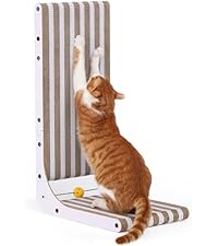 - Unique design - L shape scratcher provides not only save space but also a place for cats to lounge and turn it into a cat wall scratcher ( Vertical ) , cat lounge/bed ( Horizontal) or cat house ( Prone ).