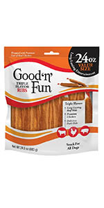 Good 'n' Fun Triple Flavor Ribs, Rawhide Snack for All Dogs, 24 oz